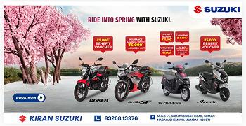 Established in 2018, KIRAN SUZUKI, Chembur is one of the most well-known and trusted Suzuki Bike Showroom in Mumbai-Chembur. KIRAN SUZUKI is an authorised Suzuki Motorcycle Dealer with a state-of-the-art showroom where you can check out the new Avenis,take it out for a test ride, and book your dream ride. On our website, you can explore the entire range of two-wheelers by Suzuki Motorcycles. You can also find out the ex-showroom price of different variants, calculate EMI, get a callback, and even book a suitable time slot for a test ride. Check out your favourite Suzuki motorcycles and scooters conveniently, with the easy-to-use filters to simplify your search. KIRAN SUZUKI offers the entire range of Suzuki Motorcycles, Big Bikes, and Scooters in the Avenis from KIRAN SUZUKI,check out its features, take it for a ride, get a quote, and book your favourite bike from the entire range of Suzuki motorcycles and scooters in. At KIRAN SUZUKI, you can also avail two-wheeler finance to buy your favourite ride.